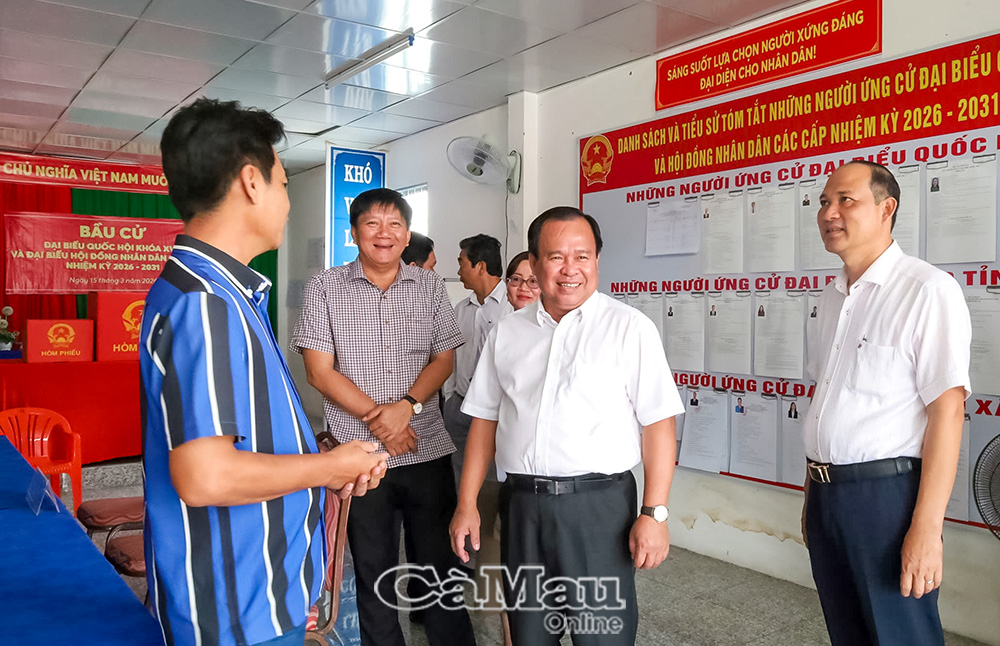 Đoàn cũng kiểm tra thực tế tại tổ bầu cử Ấp 3 (Xã Nguyễn Phích); tổ bầu cử Ấp 16 và Ấp 3 (xã Khánh Lâm); cùng tổ bầu cử Ấp 7 và Ấp 16 (xã U Minh). Qua kiểm tra, đồng chí Nguyễn Minh Luân, Phó Chủ tịch UBND tỉnh, yêu cầu các địa phương tiếp tục rà soát kỹ từng khâu chuẩn bị, bảo đảm tổ chức ngày bầu cử đúng quy định, không để xảy ra sai sót.