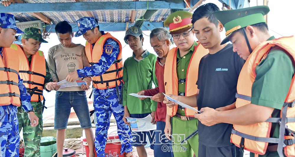 Các lực lượng chức năng kết hợp tuần tra, kiểm soát với tuyên truyền cho ngư dân về chống khai thác IUU. Ảnh: TRẦN NGUYÊN