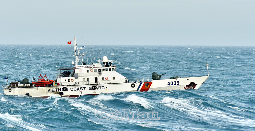 Tàu CSB 4035 thuộc Hải đoàn 42 - Năm Căn - Cà Mau luôn trực canh, đảm bảo an ninh, điểm tựa cho ngư dân trên vùng biển Cà Mau. Ảnh: TRẦN NGUYÊN