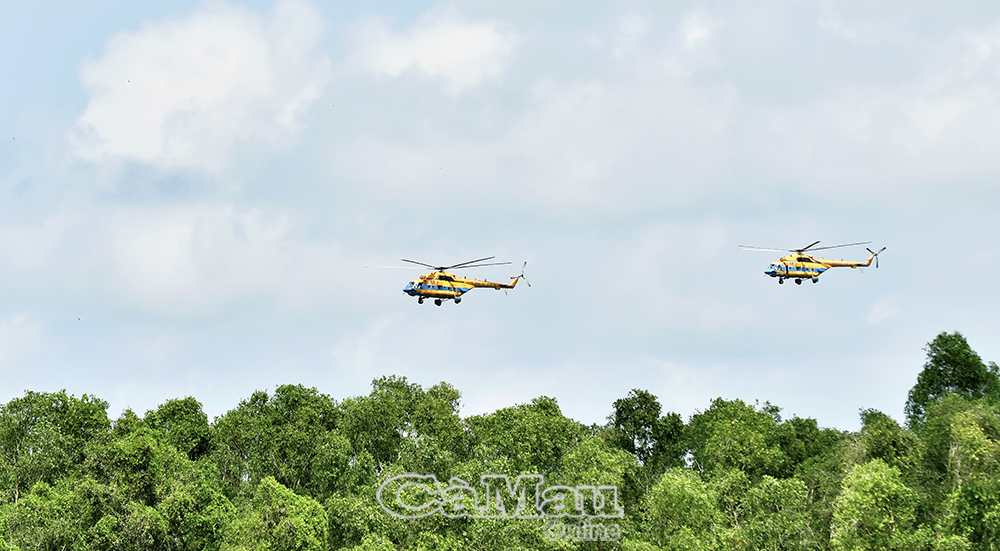 Sử dụng không quân trong diễn tập khu vực phòng thủ Cà Mau. Ảnh: TRẦN NGUYÊN