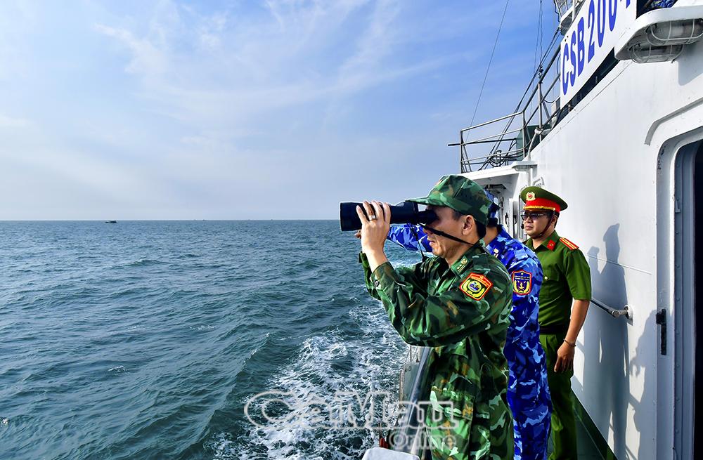 Các lực lượng vũ trang phối hợp tuần tra, giám sát hoạt động trên vùng biển Cà Mau. Ảnh: TRẦN NGUYÊN