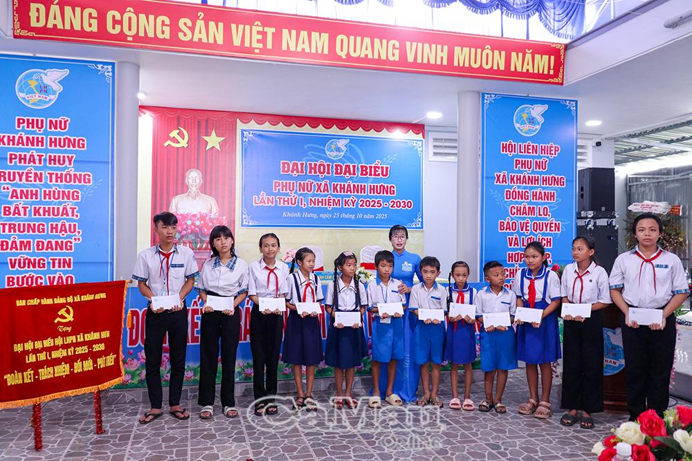 Dịp này, từ mô hình “Đổi rác thải nhựa gây quỹ học bổng 20/10”, Hội LHPN xã Khánh Hưng trao 26 suất học bổng, mỗi suất trị giá 500.000 đồng cho học sinh có hoàn cảnh khó khăn, góp phần tiếp thêm động lực để các em vươn lên trong học tập.
