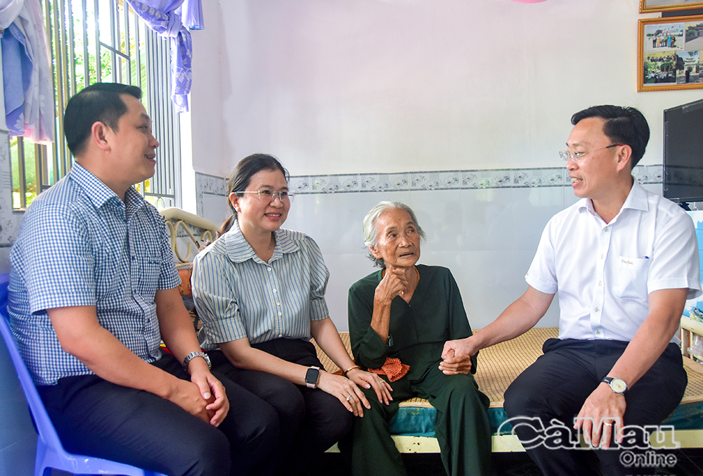 Phó Chủ tịch UBND tỉnh Huỳnh Hữu Trí ân cần thăm hỏi sức khỏe Mẹ Việt Nam anh hùng Huỳnh Thị Sến.