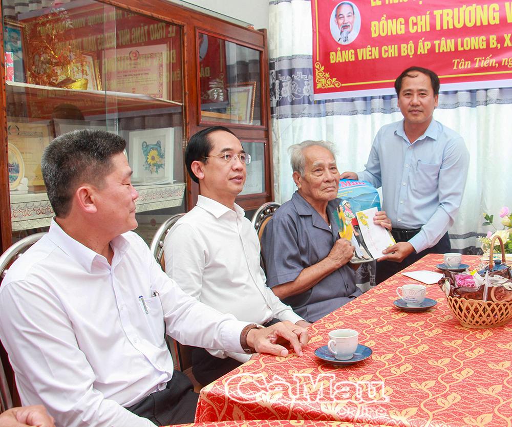 Trong đợt này, Đoàn công tác trao Huy hiệu 65 năm tuổi Đảng cho 3 đồng chí: Trương Văn Mạnh (Chi bộ ấp Tân Long B, xã Tân Tiến), Quách Vĩnh Tường (Chi bộ ấp Thanh Tùng, xã Thanh Tùng) và Lê Văn Thắng (Chi bộ ấp Nhị Nguyệt, Xã Trần Phán).