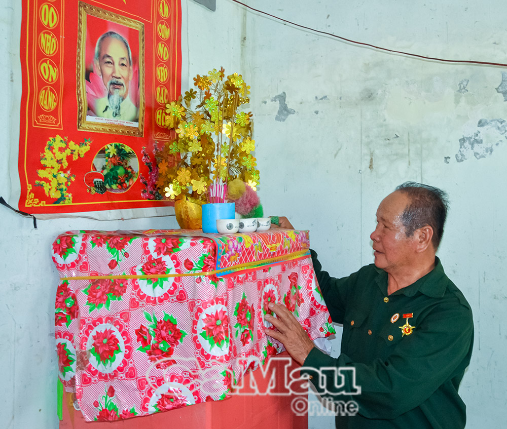 Trong ngôi nhà đơn sơ của ông Nguyễn Văn Ân (ấp Cai Giảng, xã Hồng Dân), bàn thờ Bác Hồ được đặt ở vị trí trang trọng, được ông và gia đình chu toàn hương khói hằng ngày.