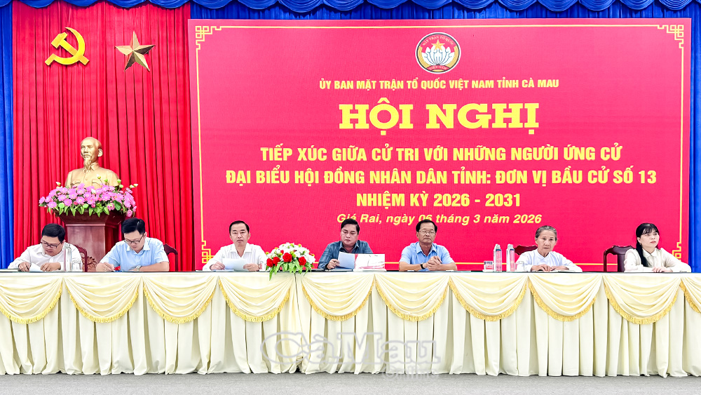 *Tại phường Giá Rai, Ban Thường trực Uỷ ban MTTQ Việt Nam tỉnh Cà Mau phối hợp với địa phương tổ chức hội nghị tiếp xúc cử tri với những người ứng cử đại biểu HĐND tỉnh nhiệm kỳ 2026-2031 (Đơn vị bầu cử số 13).