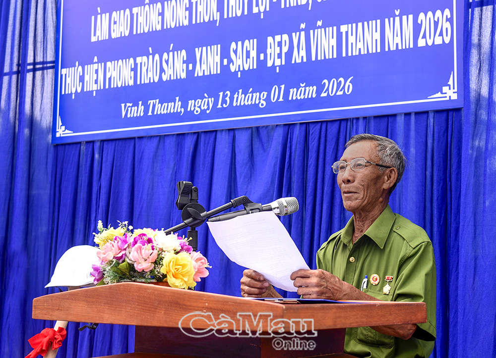 Ngay sau lễ ra quân, xã Vĩnh Thanh tổ chức khởi công nâng cấp tuyến lộ giao thông nông thôn ấp Mỹ Hoà, đấu nối tỉnh lộ ĐT.978. Công trình có tổng mức đầu tư trên 1,3 tỷ đồng, chiều dài gần 1.000 mét, mặt đường rộng 2,5 mét. Đây là công trình mẫu về quy mô và chất lượng, làm cơ sở để nhân rộng các công trình giao thông nông thôn khác trên địa bàn xã trong năm 2026.