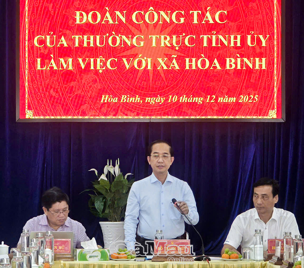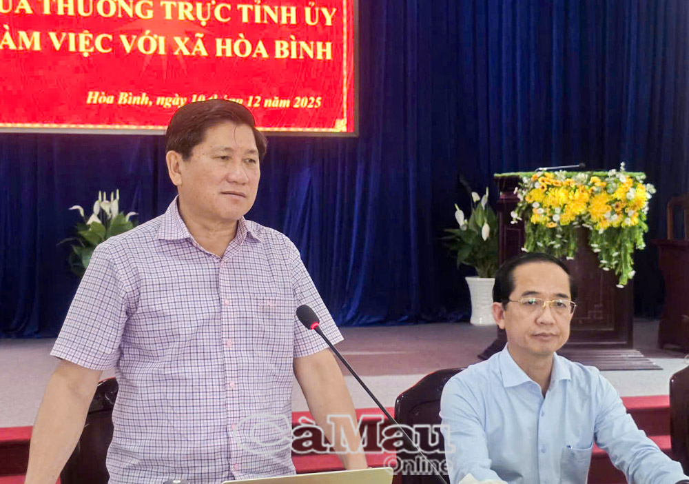 Phó Bí thư Tỉnh uỷ, Chủ tịch Uỷ ban MTTQ Việt Nam tỉnh Cà Mau Hồ Thanh Thuỷ đánh giá cao sự chuyển biến khá toàn diện trên các lĩnh vực của xã Hoà Bình trong 6 tháng qua.
