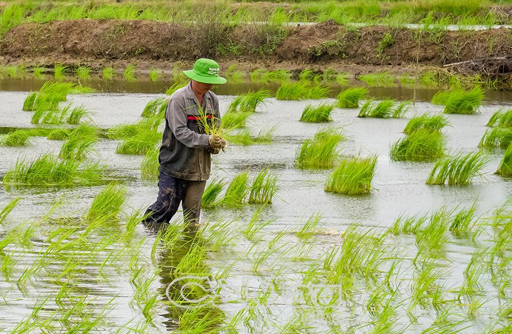 Người dân xã Nguyễn Phích làm đất chuẩn bị gieo mạ, cấy một vụ lúa trên đất nuôi tôm.
