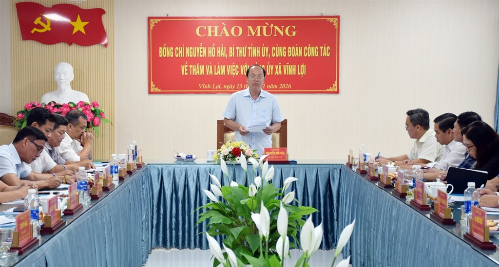 Phát biểu chỉ đạo tại buổi làm việc, Bí thư Tỉnh ủy Nguyễn Hồ Hải yêu cầu Ban Thường vụ Đảng ủy xã Vĩnh Lợi tiếp tục giữ vững đoàn kết, thống nhất nội bộ, thực hiện nghiêm nguyên tắc tập trung dân chủ, đề cao trách nhiệm người đứng đầu, siết chặt kỷ luật, kỷ cương công vụ, nâng cao chất lượng lãnh đạo, điều hành; phân công nhiệm vụ rõ người, rõ việc, gắn trách nhiệm với kết quả. Xã cần rà soát, đánh giá thực chất đội ngũ cán bộ, công chức sau sắp xếp, bố trí đúng người, đúng việc; khẩn trương hoàn thiện đề án vị trí việc làm, chú trọng đào tạo, bồi dưỡng kỹ năng quản lý, kỹ năng số và tinh thần phục vụ Nhân dân.