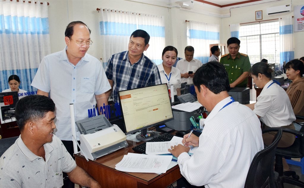 Bí thư Tỉnh ủy Nguyễn Hồ Hải khảo sát Trung tâm Phục vụ hành chính công xã Vĩnh Lợi.