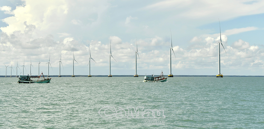 Cà Mau hiện có 16 dự án điện gió đưa vào vận hành thương mại, đóng góp quan trọng vào tăng trưởng kinh tế của địa phương. Ảnh: TRẦN NGUYÊN