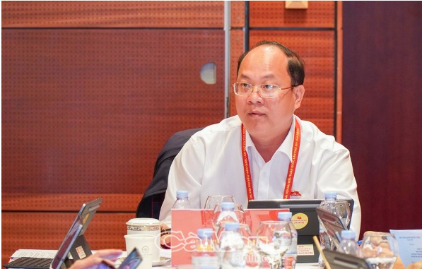 Đồng chí Nguyễn Hồ Hải, Bí thư Tỉnh uỷ Cà Mau, phát biểu tại buổi thảo luận của Đoàn đại biểu Đảng bộ tỉnh Cà Mau về các văn kiện trình Đại hội XIV của Đảng. Ảnh: KIÊN GIANG - MINH LUÂN