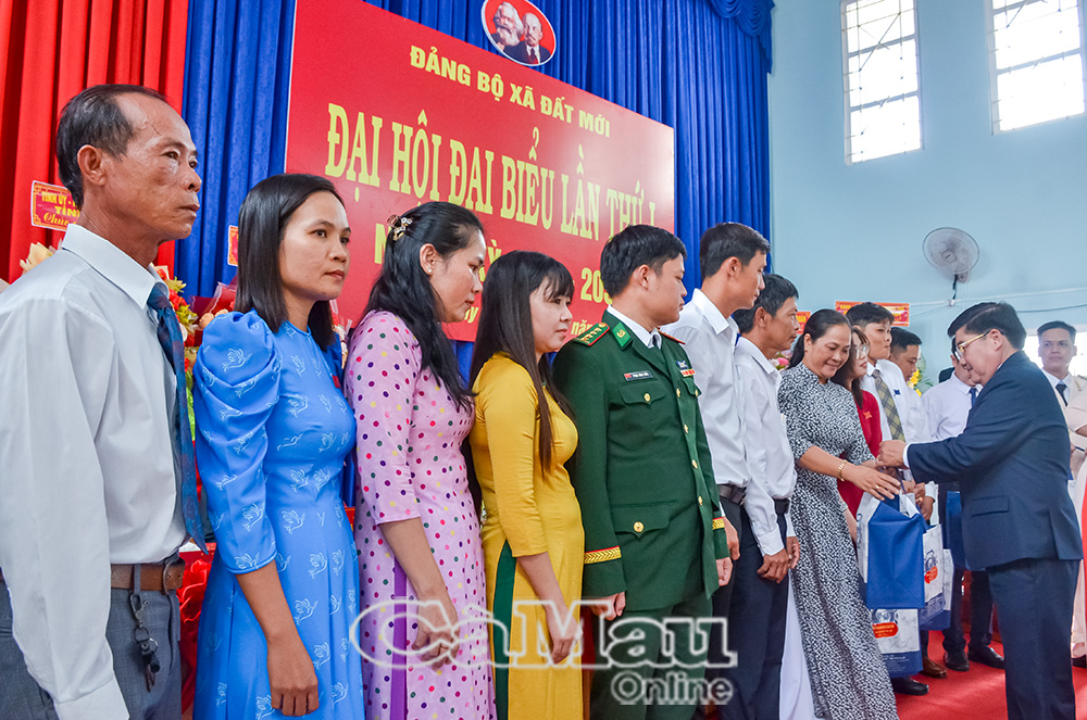 Phát biểu chỉ đạo tại đại Hội, đồng chí Trần Hữu Phước, Uỷ viên Ban Thường vụ Tỉnh uỷ, Giám đốc Sở Nội vụ, nhấn mạnh: “Sau Đại hội, Đảng bộ, trước hết là Ban Chấp hành, Ban Thường vụ phải tập hợp đoàn kết, quyết tâm chính trị cao hơn, phất đấu nhiều hơn nhằm phát huy những thành tích đạt được, khắc phục khó khăn, thục hiện thắng lợi các mục tiêu nghị quyết đề ra: Xây dựng Đảng bộ và hệ thống chính trị trong sạch vững mạnh; đẩy mạnh ứng dụng khoa học, công nghệ, đổi mới, sáng tạo và chuyển đổi số; phát huy dân chủ, khơi dậy khát vọng phát triển; tập trung xây dựng kết cấu hạ tầng, phát triển kinh tế - xã hội, gắn với bảo vệ môi trường; bảo đảm quốc phòng - an ninh; nâng cao đời sống vật chất, tinh thần cho Nhân dân; huy động mọi nguồn lực phát triển nông nghiệp sinh thái, nông thôn hiện đại, văn minh, xây dựng xã Đất Mới phát triển bền vững.