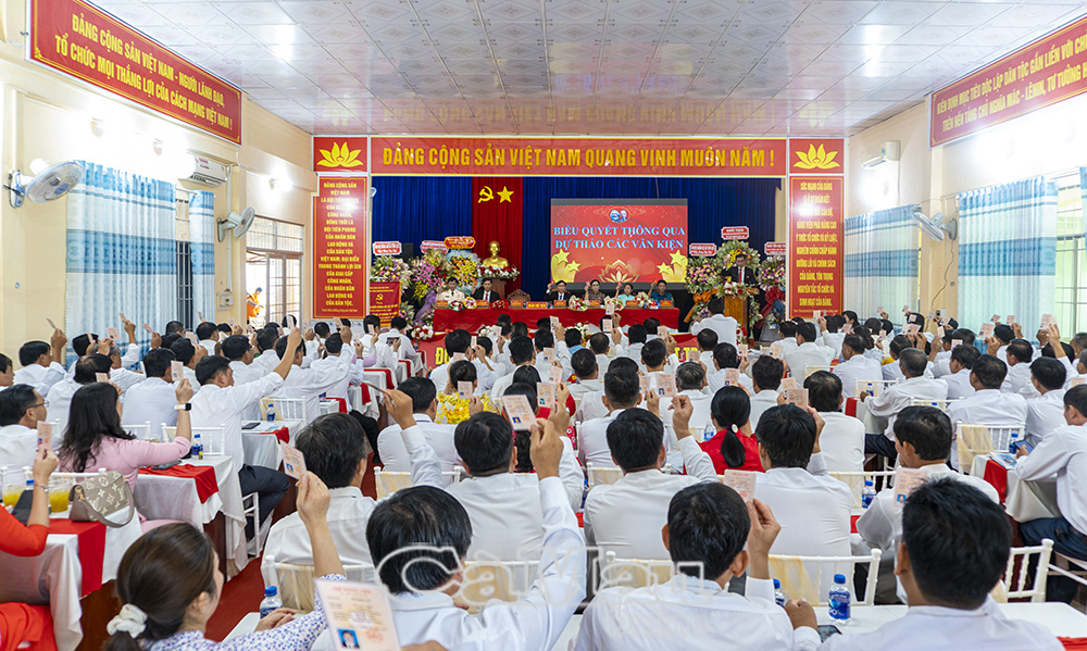 Đại biểu biểu quyết thông qua dự thảo nghị quyết đại hội.