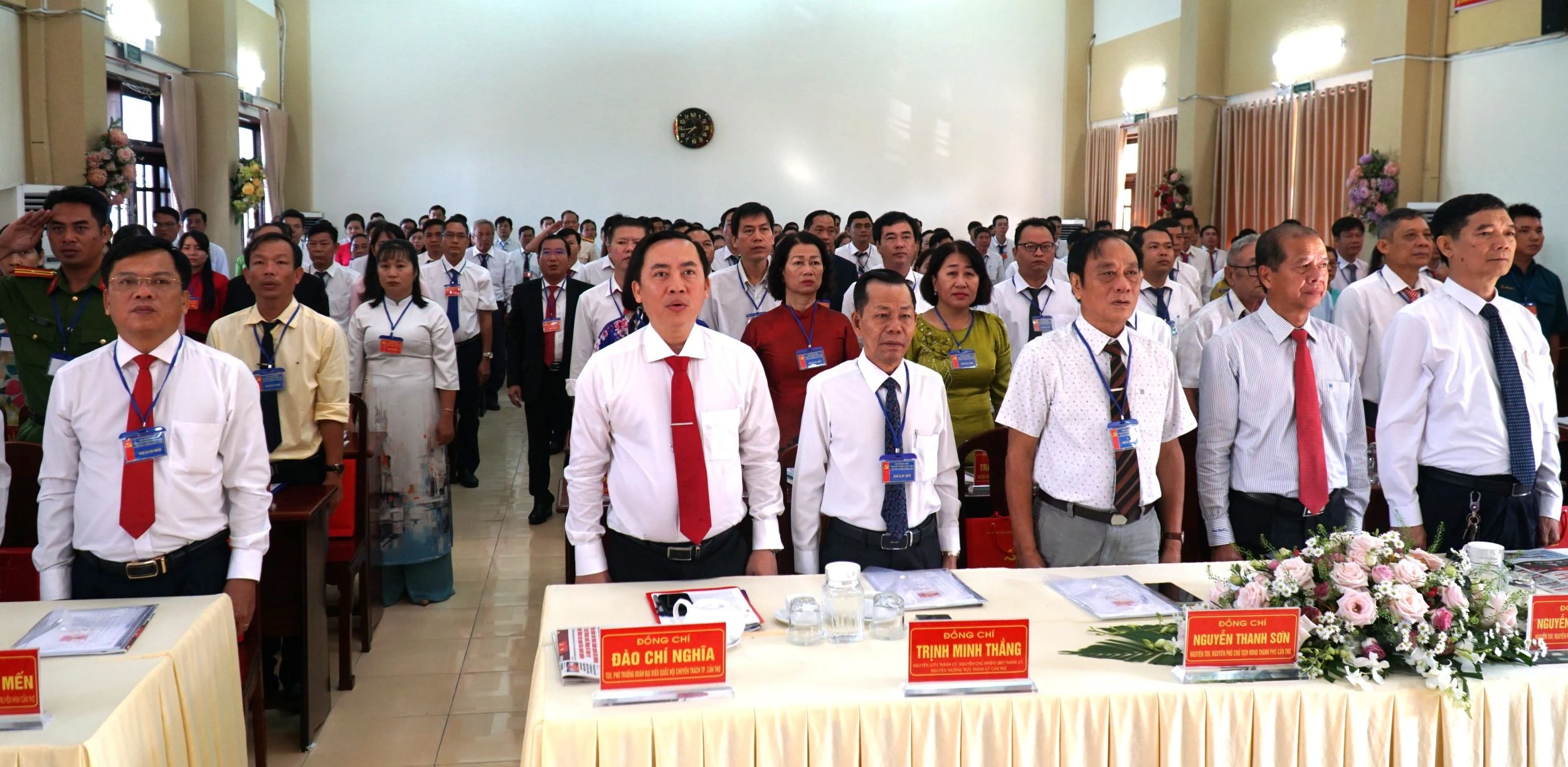 Đại biểu dự Đại hội đại biểu Đảng bộ phường Thuận Hưng thực hiện nghi thức chào cờ. Ảnh: ANH DŨNG