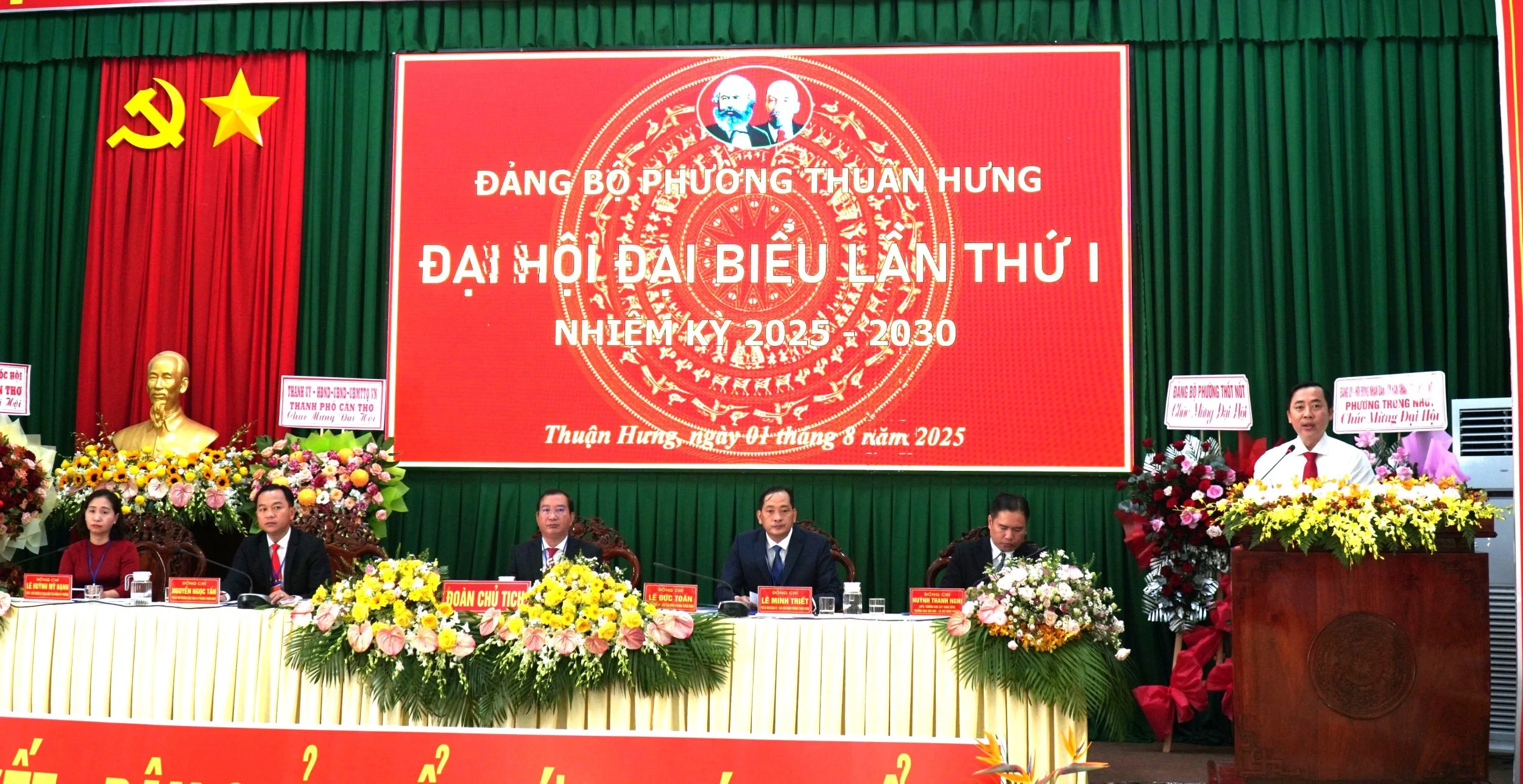 (CT) - Sáng 1-8, Đảng bộ phường Thuận Hưng tổ chức Đại hội (ĐH) đại biểu lần thứ I, nhiệm kỳ 2025-2030. Có 130 đại biểu đại diện cho 786 đảng viên của Đảng bộ được triệu tập dự ĐH.