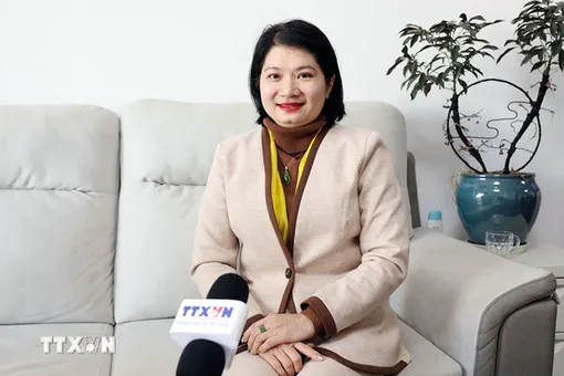 Tiến sĩ Phạm Thị Thanh Loan trả lời phỏng vấn phóng viên TTXVN tại Trung Quốc.