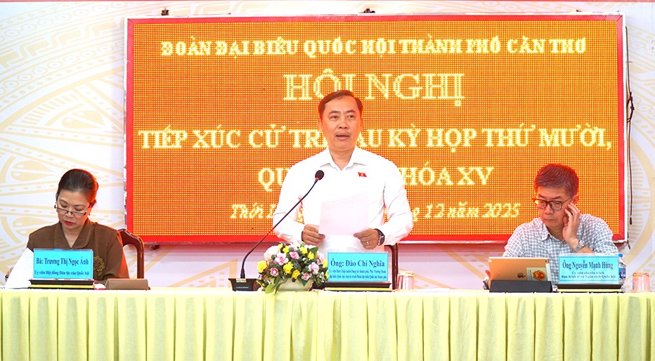 Sáng 14/12, tại Hội trường UBND phường Thới Long, Ðoàn đại biểu Quốc hội TP Cần Thơ gồm: Bà Trương Thị Ngọc Ánh, Ủy viên là đại biểu Quốc hội hoạt động kiêm nhiệm tại Hội đồng Dân tộc của Quốc hội; ông Nguyễn Mạnh Hùng, Ủy viên là đại biểu Quốc hội hoạt động chuyên trách tại Ủy ban Kinh tế và Tài chính của Quốc hội; Ông Đào Chí Nghĩa, Thành ủy viên, Phó Trưởng đoàn đại biểu Quốc hội chuyên trách Đoàn đại biểu Quốc hội TP Cần Thơ, tiếp xúc 120 cử tri phường Thới Long sau kỳ họp thứ Mười, Quốc hội khóa XV.