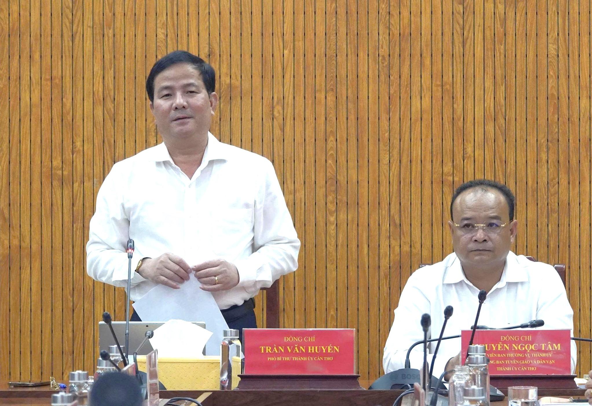 Đồng chí Trần Văn Huyến, Phó Bí thư Thành ủy, Trưởng Ban Chỉ đạo 35 Thành ủy, Trưởng Ban Chỉ đạo Công tác dân tộc, tôn giáo thành phố phát biểu chỉ đạo tại hội nghị.