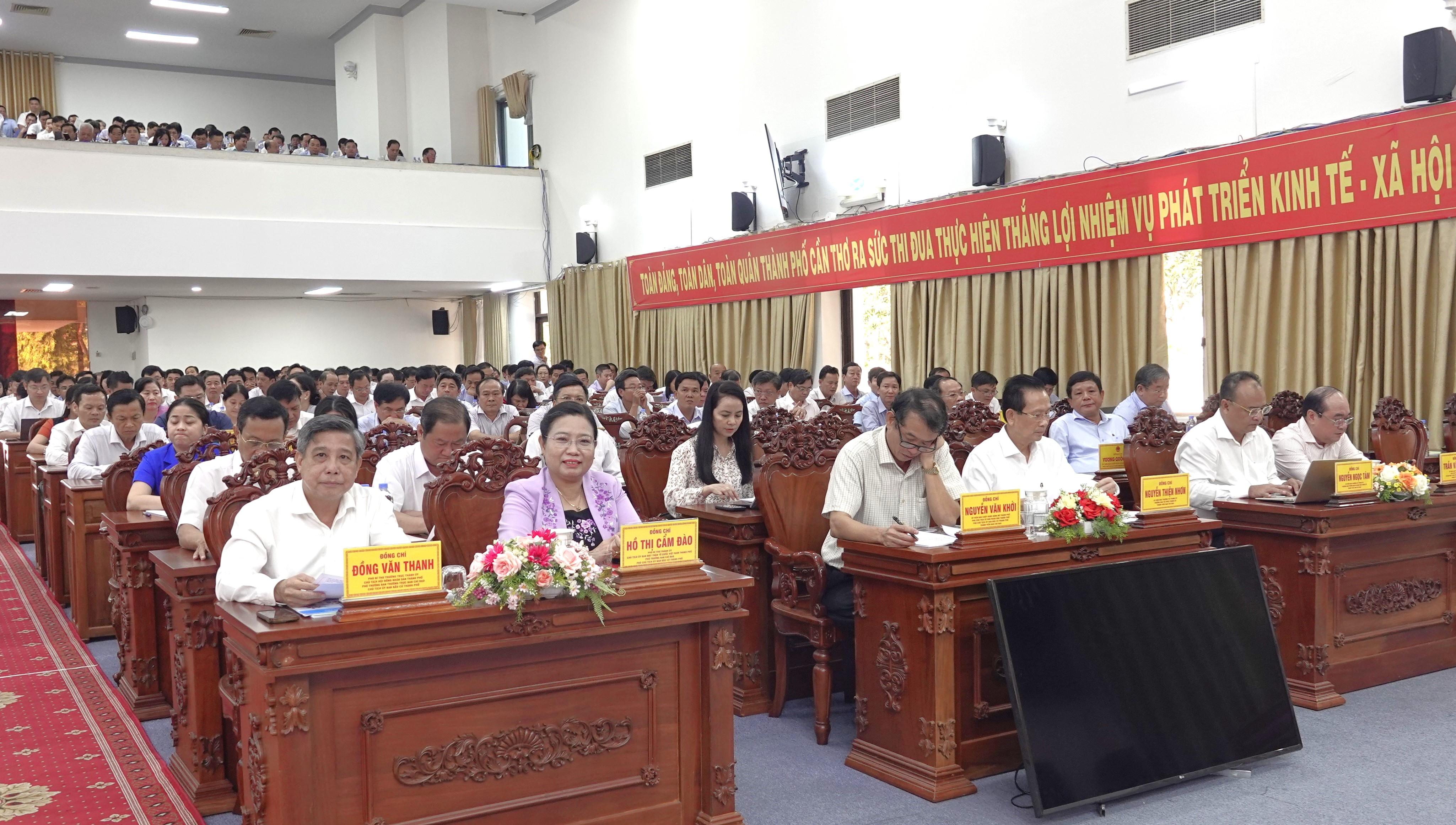 Đại biểu tham dự hội nghị nghe đại diện các cơ quan trình bày văn bản về: Chỉ thị của Thành ủy về lãnh đạo cuộc bầu cử; Chỉ thị của Chủ tịch UBND thành phố về tổ chức cuộc bầu cử; Kế hoạch của Ủy ban MTTQVN thành phố về tham gia công tác bầu cử; Kế hoạch của Ủy ban Bầu cử thành phố về tổ chức bầu cử.