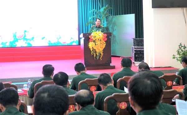 Đại tá Huỳnh Văn Hung, Ủy viên Ban Thường vụ Thành ủy, Chỉ huy trưởng Bộ CHQS TP Cần Thơ, phát biểu kết luận hội nghị.