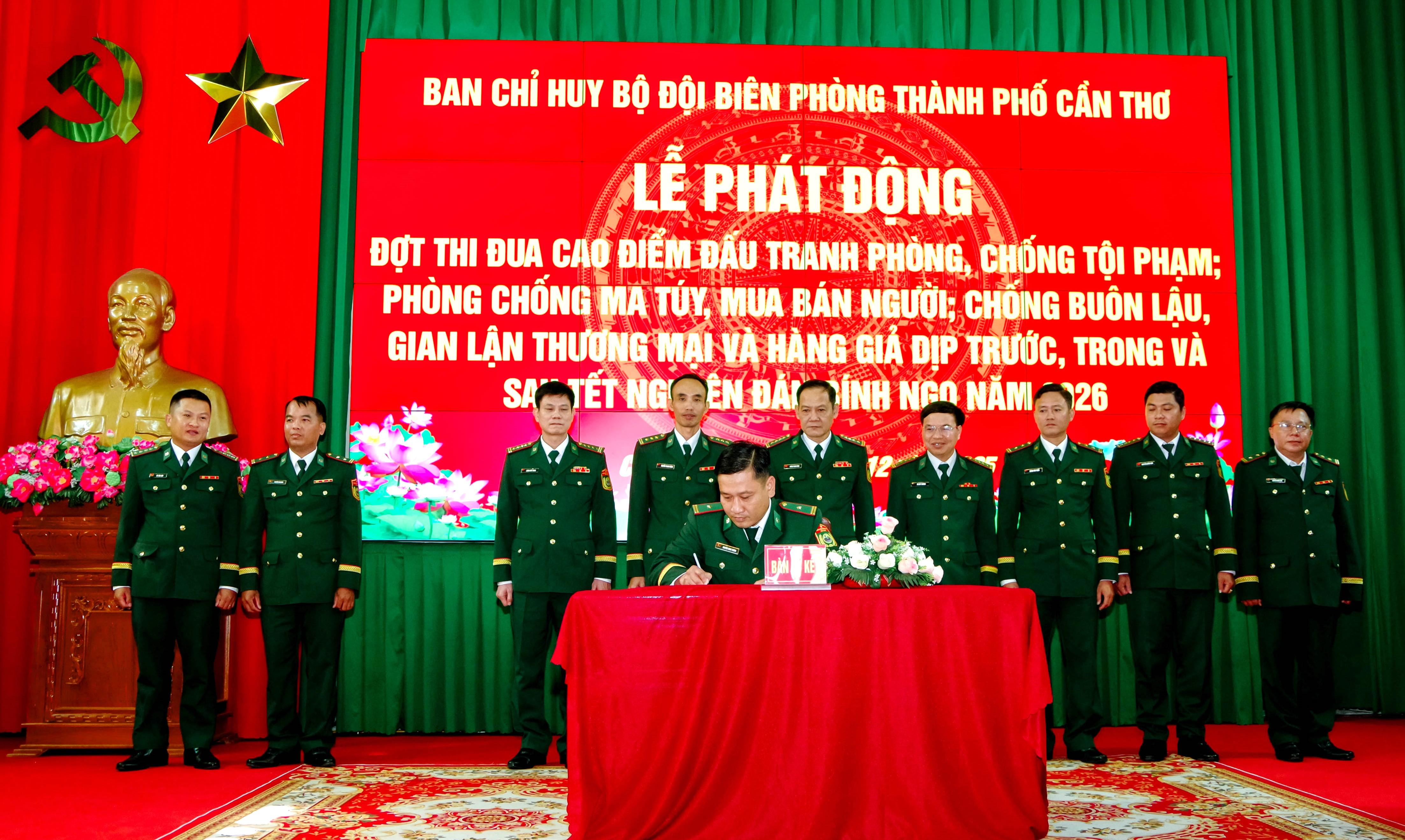 Chiều 15/12, Ban Chỉ huy Bộ đội Biên phòng (BĐBP) thành phố Cần Thơ tổ chức Lễ phát động đợt thi đua cao điểm đấu tranh phòng, chống tội phạm; phòng, chống ma túy, mua bán người; chống buôn lậu, gian lận thương mại và hàng giả dịp trước, trong và sau Tết Nguyên đán Bính Ngọ năm 2026. Đại tá Huỳnh Thanh Hùng, Bí thư Đảng ủy, Chính ủy BĐBP TP Cần Thơ chủ trì buổi lễ. Tham dự buổi phát động có thủ trưởng Ban Chỉ huy BĐBP thành phố và lãnh đạo các cơ quan, đơn vị trực thuộc Ban Chỉ huy.