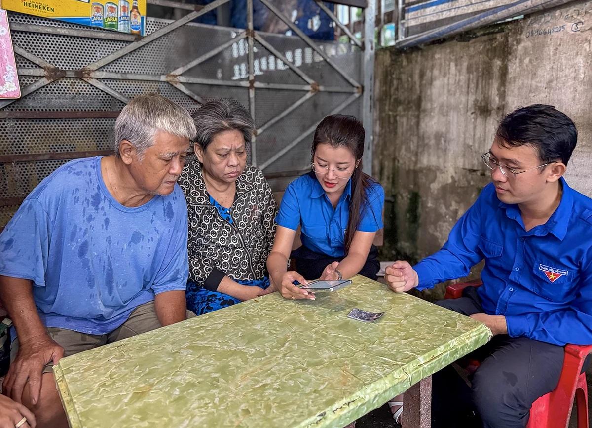 Đoàn Thanh niên phường Ninh Kiều đến nhà dân hỗ trợ bà con cài đặt ứng dụng VNeID trên điện thoại thông minh.