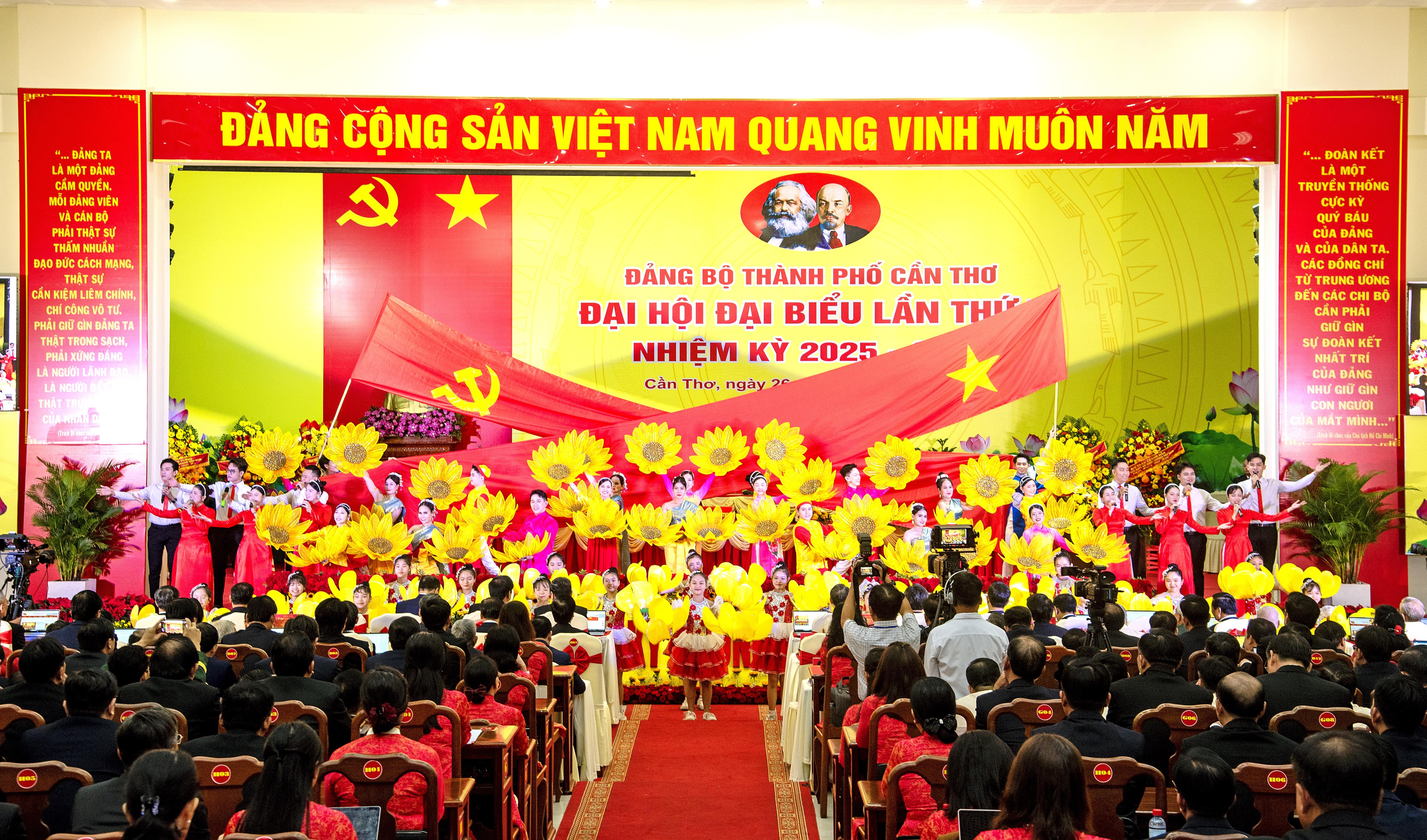 Chương trình nghệ thuật chào mừng Đại hội đại biểu Đảng bộ thành phố Cần Thơ lần thứ I, nhiệm kỳ 2025 – 2030. Ảnh: Lê Phú.