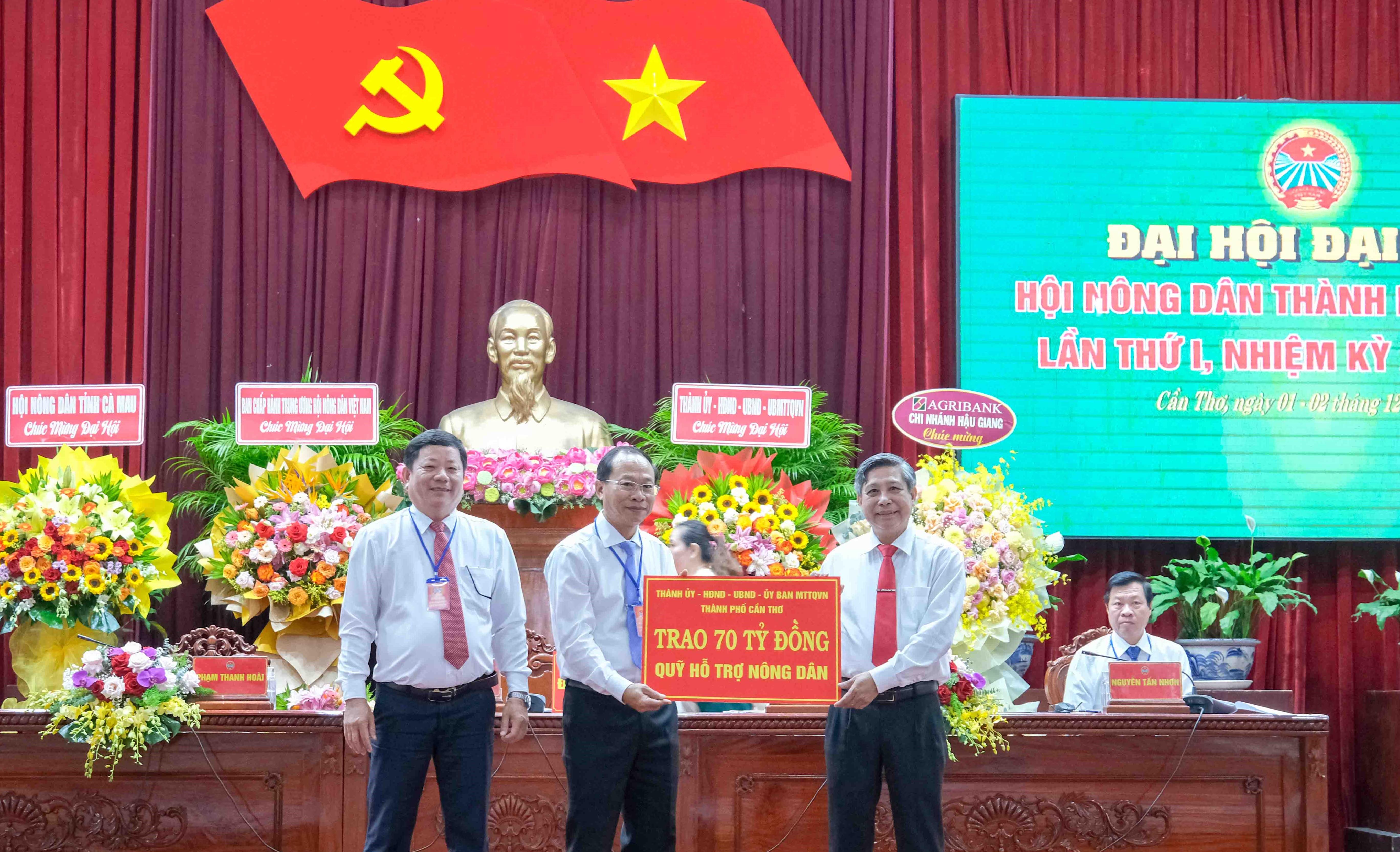 Dịp này, Thành ủy, HĐND, UBND, Ủy ban MTTQ Việt Nam thành phố Cần Thơ đã trao 70 tỷ đồng cho Quỹ hỗ trợ nông dân thành phố và 6 tỷ đồng hỗ trợ xây dựng 100 căn nhà Đại đoàn kết cho Hội Nông dân thành phố.