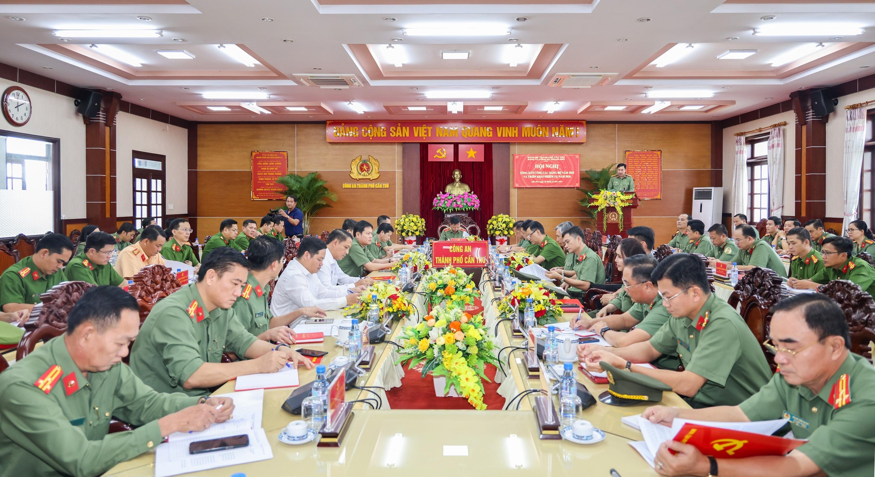 Đảng bộ Công an thành phố Cần Thơ tổ chức Hội nghị tổng kết công tác Đảng bộ năm 2025 và triển khai nhiệm vụ năm 2026. Hội nghị nhằm đánh giá toàn diện kết quả lãnh đạo thực hiện nhiệm vụ chính trị, công tác xây dựng Đảng, xây dựng lực lượng năm 2025; đồng thời xác định phương hướng, nhiệm vụ trọng tâm trong năm 2026 và giai đoạn tiếp theo.