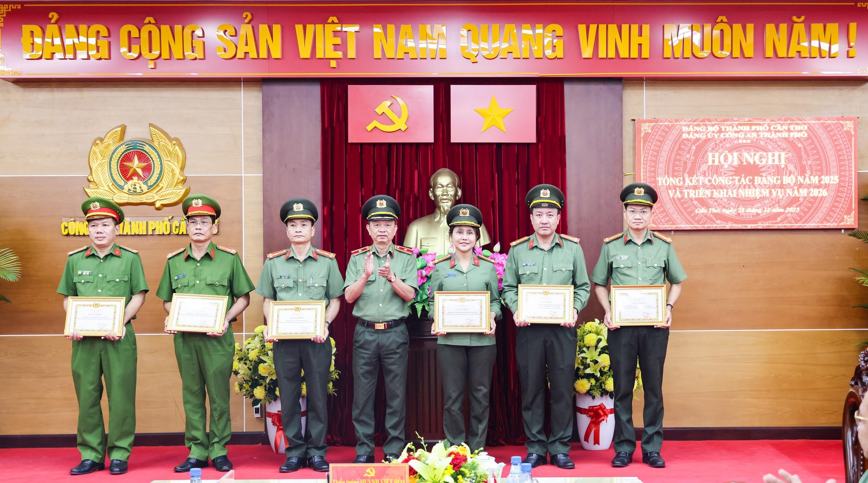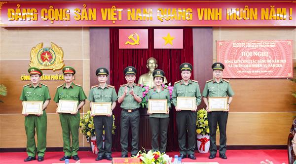 Tại hội nghị, Thiếu tướng Huỳnh Việt Hòa, Ủy viên Ban Thường vụ Thành ủy, Bí thư Đảng ủy, Giám đốc Công an thành phố đã trao Giấy khen của Đảng ủy Công an thành phố cho 06 tổ chức cơ sở đảng đạt tiêu chuẩn “Hoàn thành xuất sắc nhiệm vụ” tiêu biểu năm 2025.