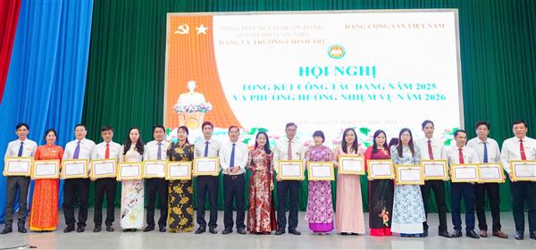 Dịp này, 1 chi bộ và 17 đảng viên được Đảng ủy Trường Chính trị TP Cần Thơ khen thưởng vì hoàn thành xuất sắc nhiệm vụ năm 2025.