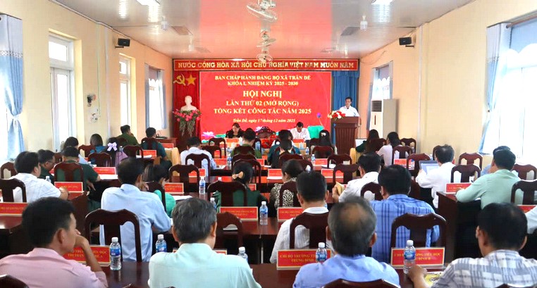 Đảng ủy xã Trần Đề tổ chức Hội nghị Ban Chấp hành Đảng bộ xã lần thứ 2, nhiệm kỳ 2025–2030, nhằm tổng kết, đánh giá tình hình phát triển kinh tế – xã hội, quốc phòng – an ninh và công tác xây dựng hệ thống chính trị năm 2025 và triển khai phương hướng, nhiệm vụ năm 2026. Dự Hội nghị có đồng chí Huỳnh Ngọc Nhã, Thành ủy viên, Phó Bí thư Đảng ủy Ủy ban nhân dân thành phố Cần Thơ.