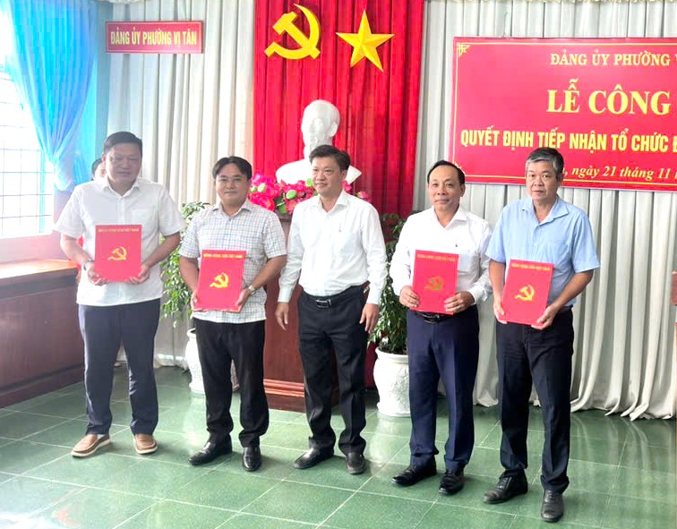 Tại đây, Ban xây dựng Đảng phường Vị Tân thông qua các quyết định của Ban Thường vụ Đảng ủy phường Vị Tân về việc tiếp nhận 04 tổ chức cơ sở đảng và quyết định thành lập 04 chi bộ cơ sở trực thuộc Đảng bộ phường Vị Tân, cụ thể: