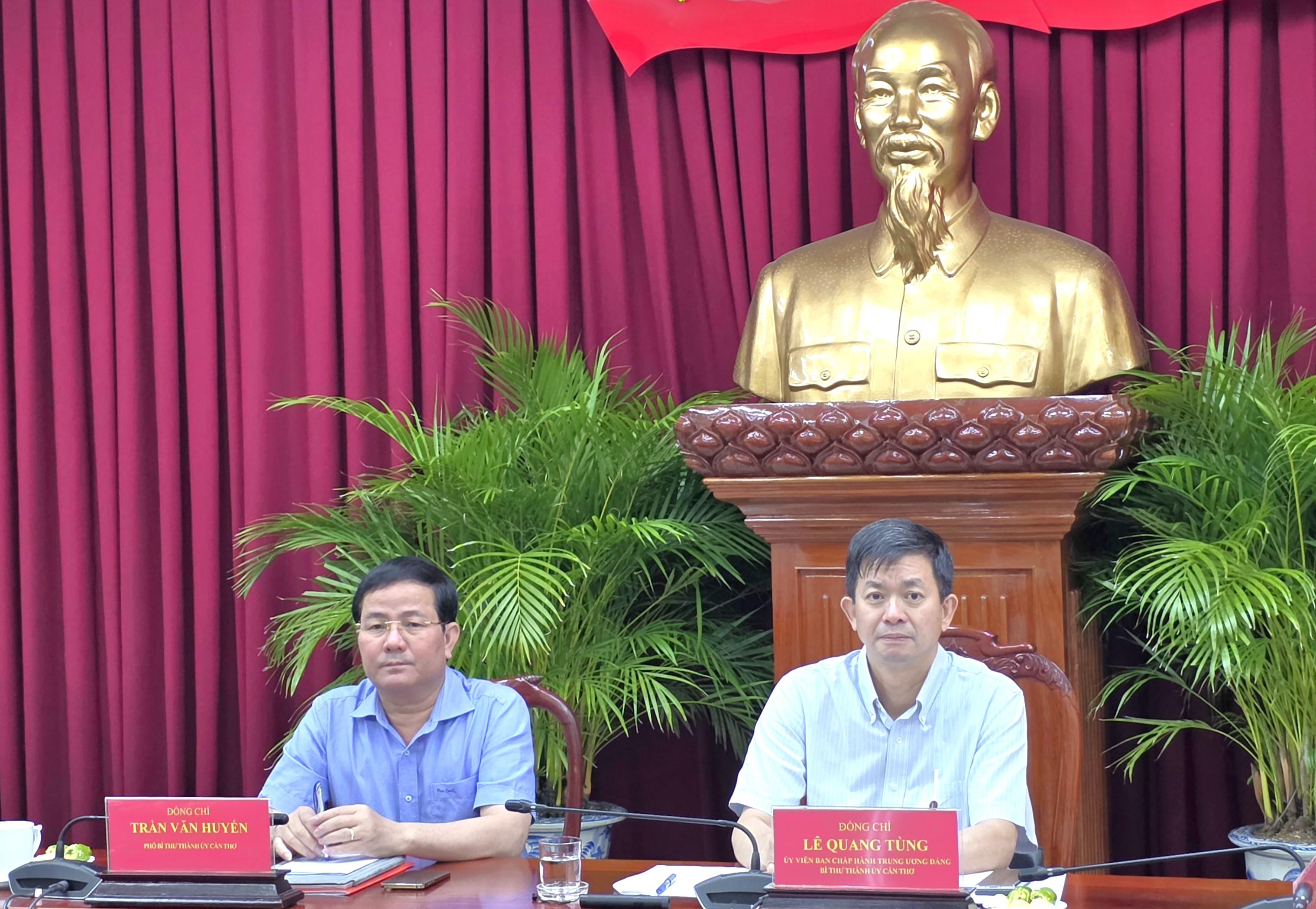 Đồng chí Lê Quang Tùng, Ủy viên Ban Chấp hành Trung ương Đảng, Bí thư Thành ủy (bên phải) và đồng chí Trần Văn Huyến, Phó Bí thư Thành ủy Cần Thơ, chủ trì buổi làm việc.