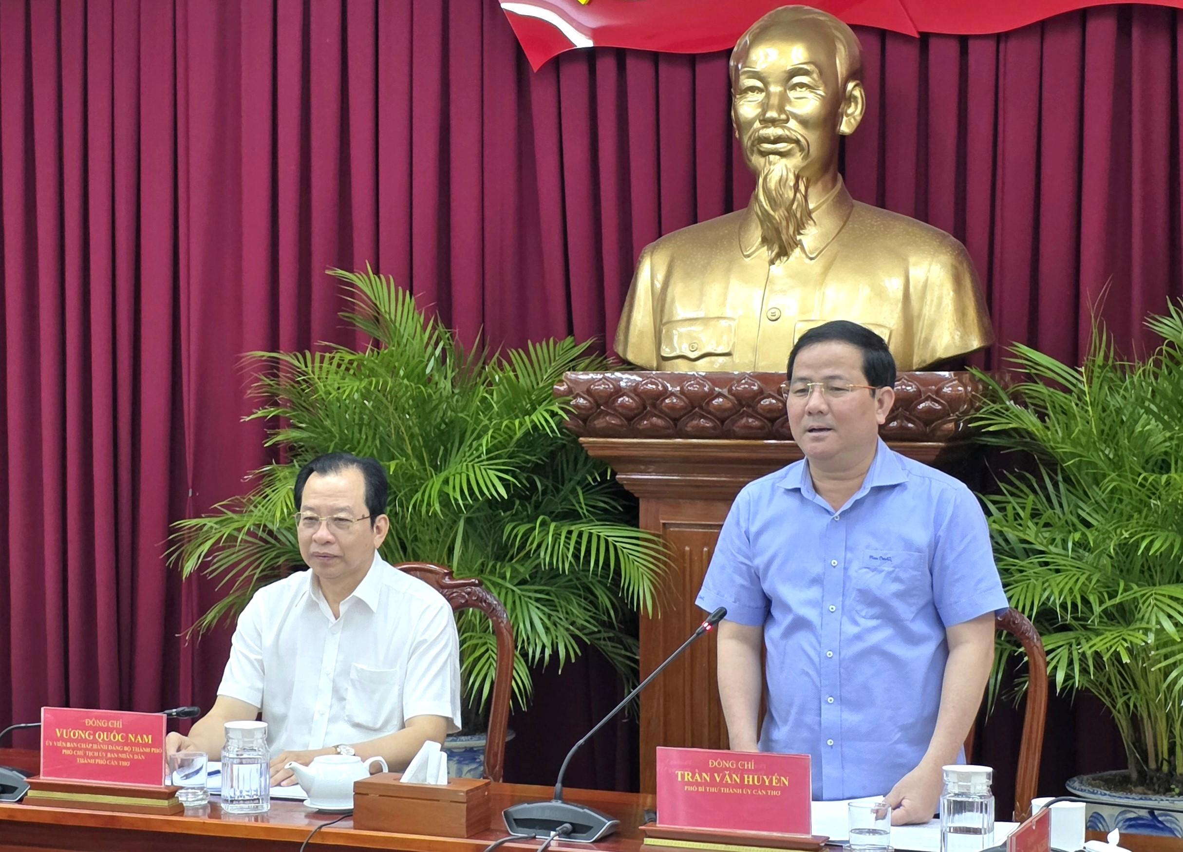 Ông Trần Văn Huyến, Phó Bí thư Thành ủy Cần Thơ, Tổ trưởng Tổ công tác số 5, phát biểu tại cuộc họp.