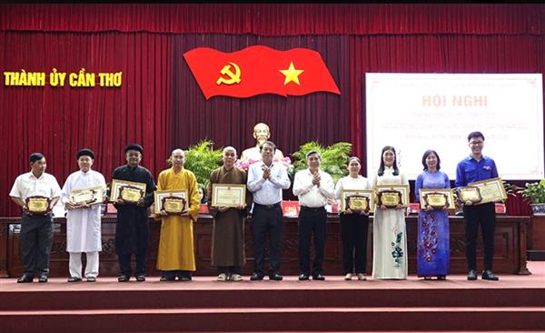 Dịp này, nhiều tập thể, cá nhân có thành tích xuất sắc trong công tác Mặt trận; cứu trợ, vận động hỗ trợ đồng bào bị thiên tai; thực hiện các công trình, phần việc chào mừng đại hội Mặt trận các cấp được tuyên dương, khen thưởng.