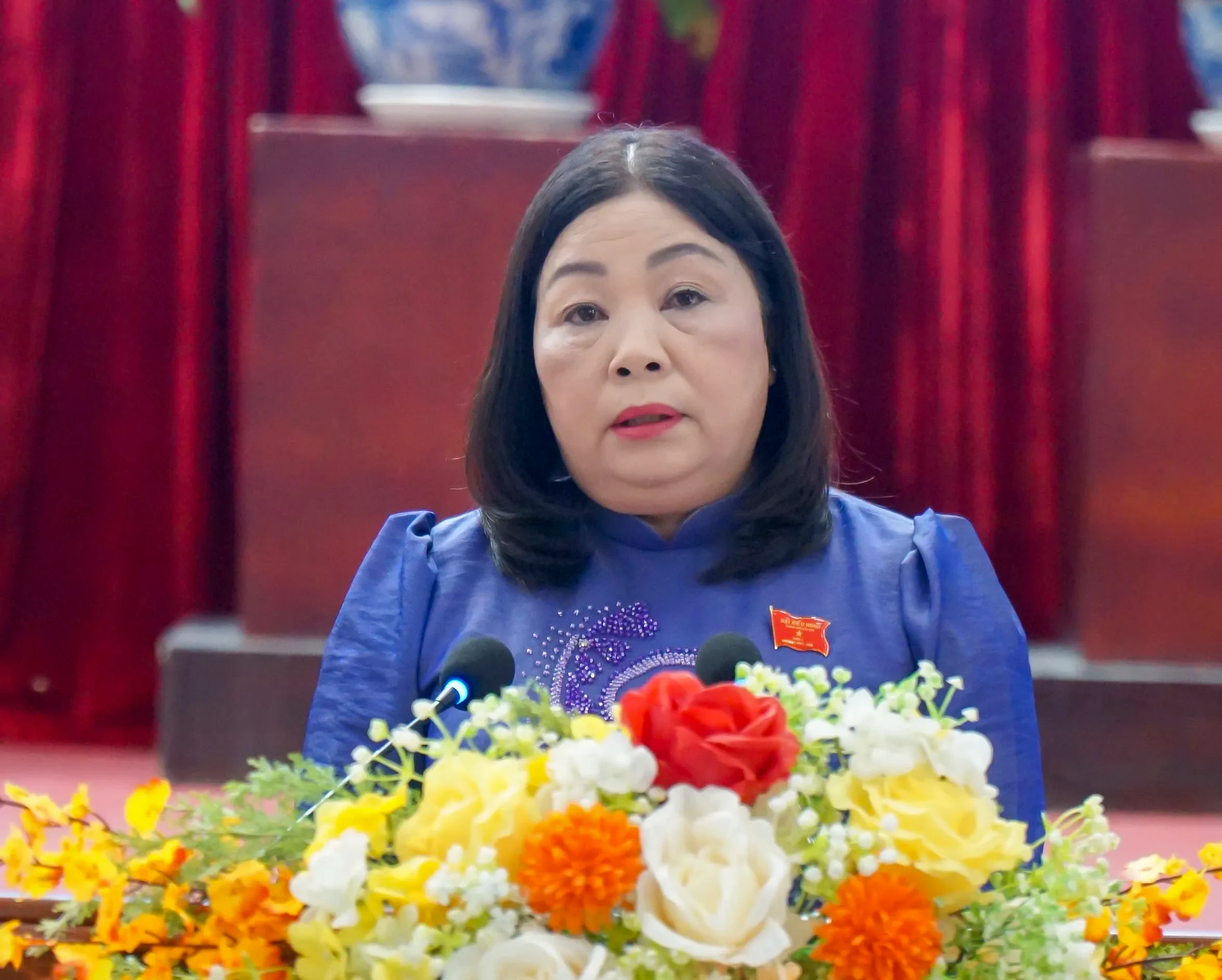 Bà Mã Thị Tươi, Ủy viên Ban Thường vụ Thành ủy, Phó Chủ tịch Thường trực HĐND thành phố thông qua chương trình, nội dung kỳ họp. Ảnh: An Bình.