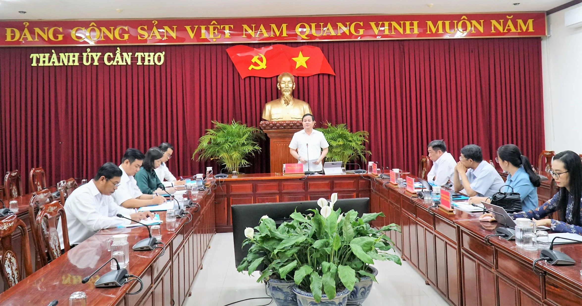 * Cùng ngày, đồng chí Trương Cảnh Tuyên, Phó Bí thư Thành ủy và đại diện lãnh đạo một số sở, ban, ngành thành phố làm việc với các Ban Thường vụ Đảng ủy các xã, phường: Vĩnh Thạnh, Vĩnh Trinh, Thuận Hưng, Thạnh Quới về công tác chuẩn bị văn kiện đại hội đảng bộ nhiệm kỳ 2025-2030 của các xã, phường.