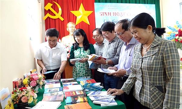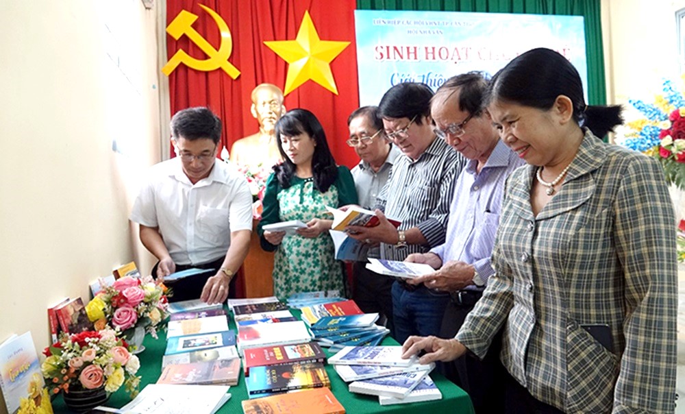 Các nhà văn Cần Thơ tại một buổi ra mắt sách do Hội Nhà văn TP Cần Thơ tổ chức. Ảnh: Đặng Vĩnh Lộc.