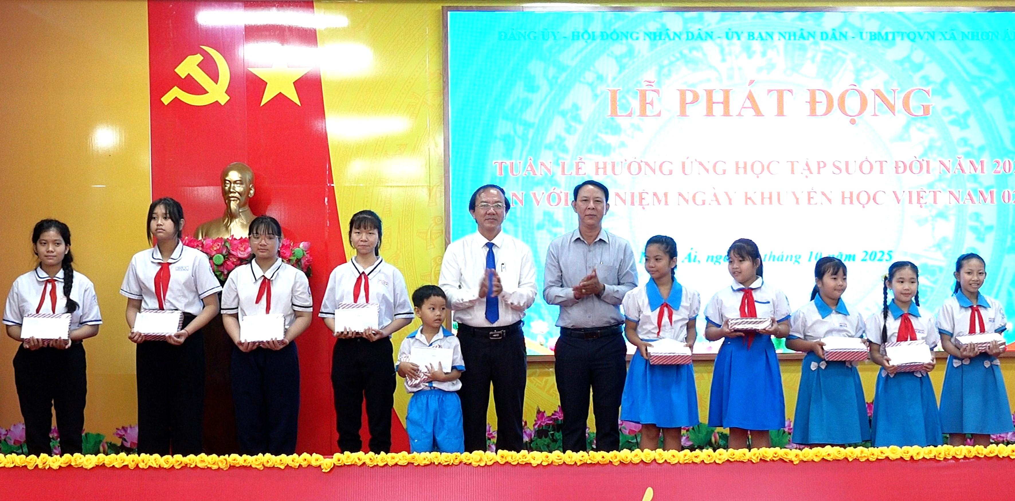 Ngày 08/10, Đảng ủy – Hội đồng nhân dân - Ủy ban nhân dân - Ủy ban Mặt trận Tổ quốc Việt Nam xã Nhơn Ái tổ chức Lễ phát động “Tuần lễ hưởng ứng học tập suốt đời năm 2025” gắn với Kỷ niệm 30 năm Ngày Khuyến học Việt Nam (02/10/1995 – 02/10/2025).