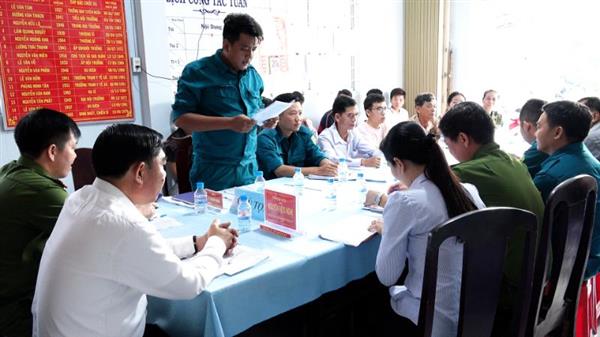 Quang cảnh bình nghị công khai tuyển chọn và gọi công dân nhập ngũ năm 2026 tại ấp Thị tứ Vàm Xáng, xã Nhơn Ái.