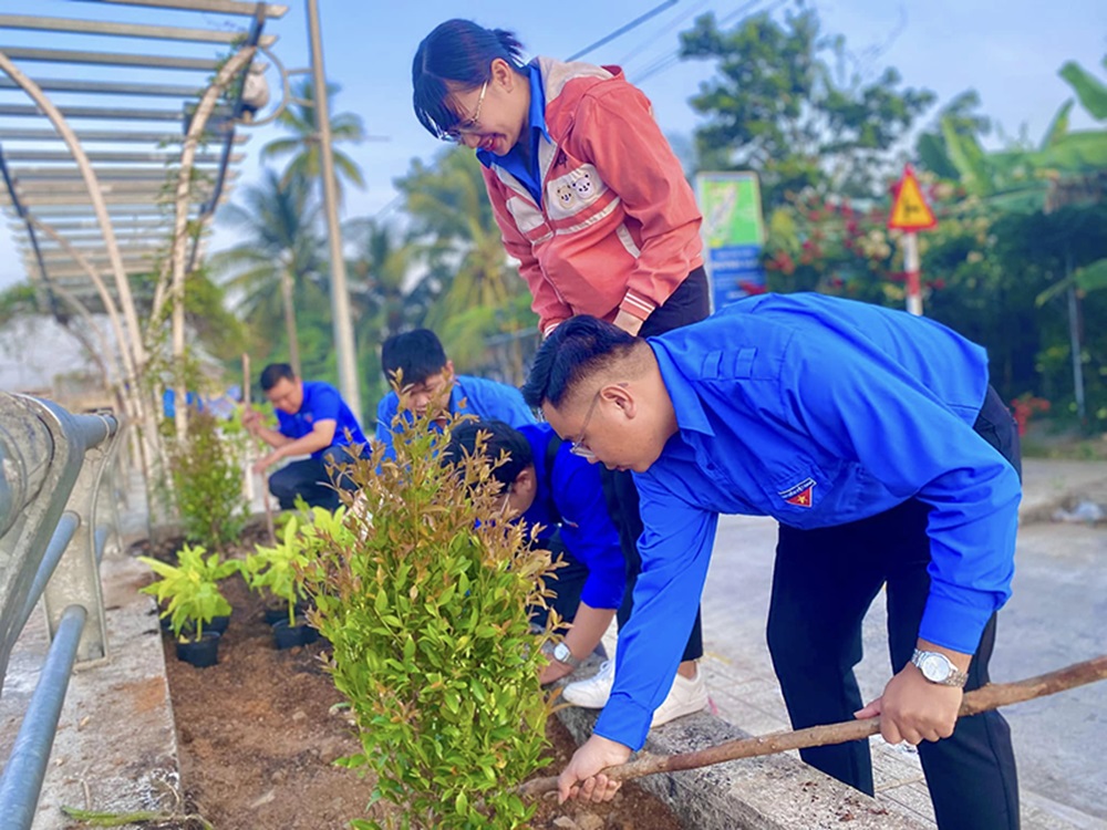 Thời gian qua tuổi trẻ Cần Thơ phát động nhiều phong trào thi đua yêu nước chào mừng các sự kiện chính trị quan trọng của đất mước. Trong ảnh: Đoàn viên thanh niên ra quân trồng cây xanh, góp phần tạo cảnh quan xanh - sạch - đẹp tại bờ kè rạch Cái Sơn. Ảnh: Tú Anh.