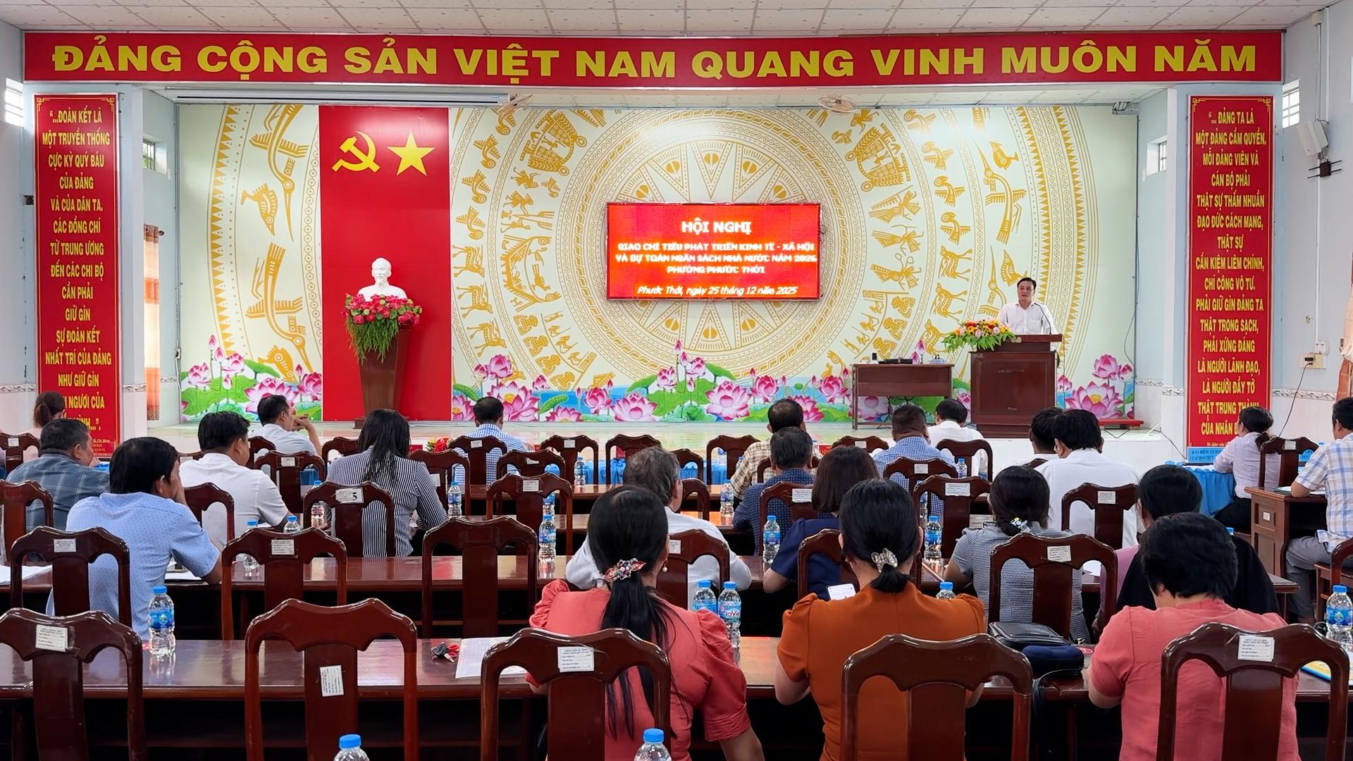 Ngày 25/12, UBND phường Phước Thới tổ chức hội nghị giao chỉ tiêu kinh tế - xã hội, dự toán ngân sách năm 2026. Đồng chí Nguyễn Hoàng Hận, Phó Bí thư Đảng ủy, Chủ tịch UBND phường Phước Thới dự và chủ trì hội nghị.