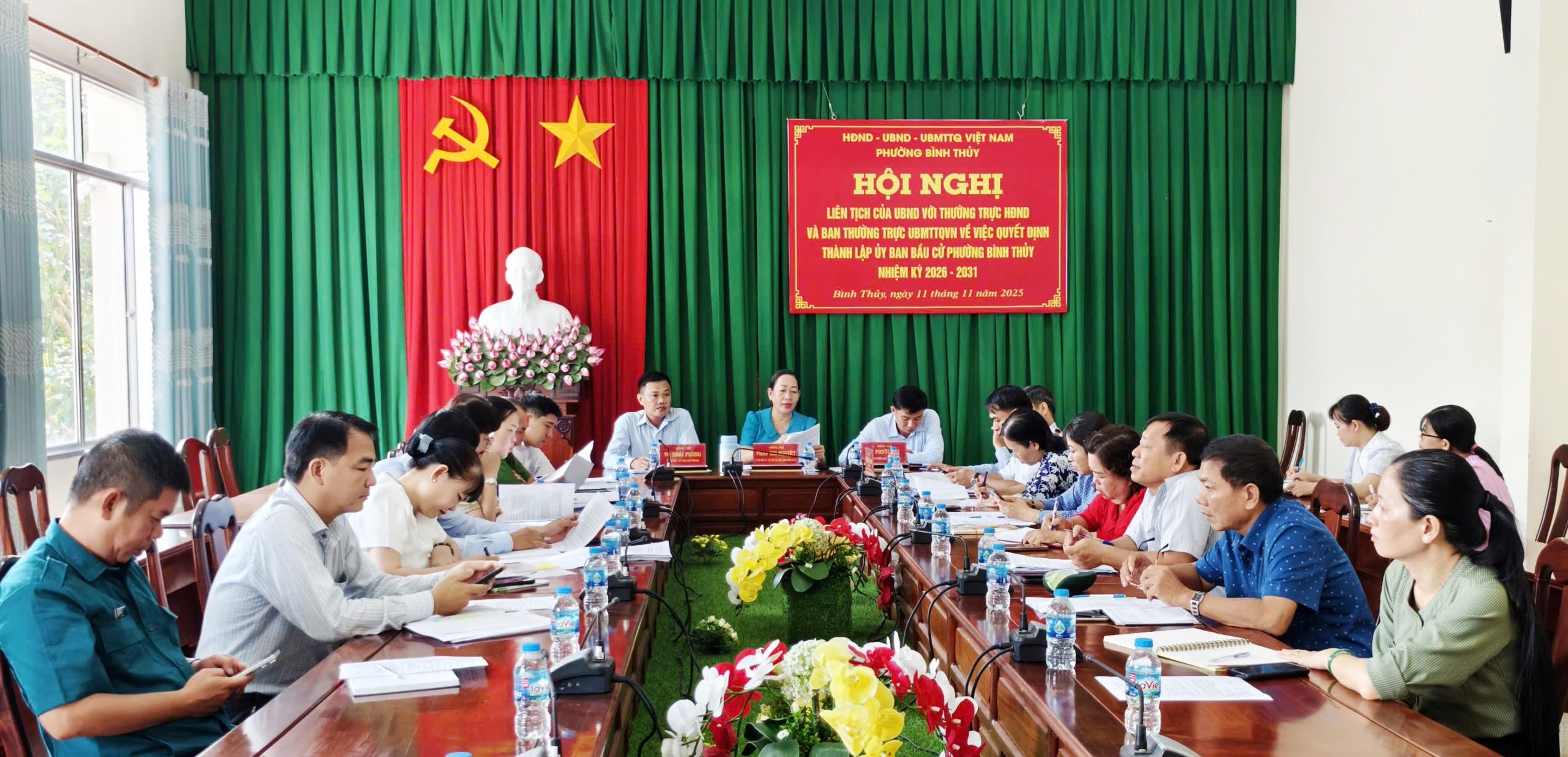 UBND phường Bình Thủy tổ chức Hội nghị liên tịch giữa UBND, Thường trực HĐND và Ban Thường trực Ủy ban Mặt trận Tổ quốc Việt Nam phường để quyết định thành lập Ủy ban bầu cử phường Bình Thủy nhiệm kỳ 2026 - 2031.