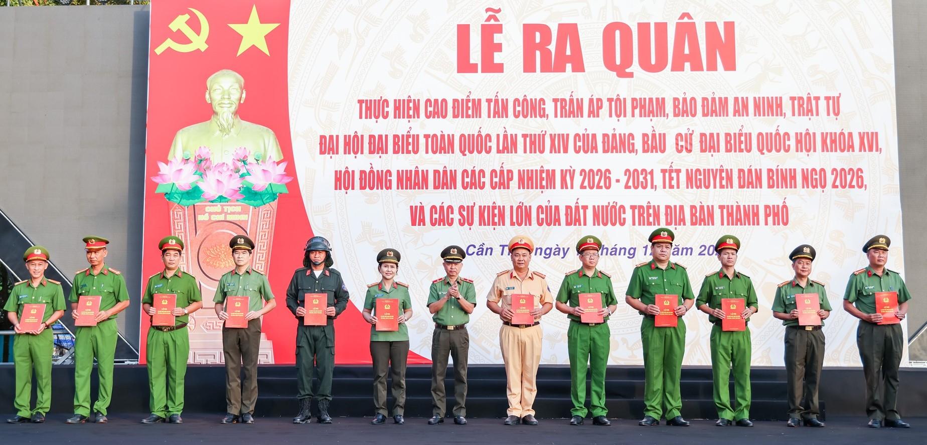 Công an thành phố Cần Thơ vừa long trọng tổ chức Lễ ra quân thực hiện cao điểm tấn công, trấn áp tội phạm, bảo đảm an ninh, trật tự phục vụ Đại hội toàn quốc lần thứ XIV của Đảng, bầu cử Quốc hội khóa XVI, HĐND các cấp nhiệm kỳ 2026 - 2031 và Tết Nguyên đán Bính Ngọ 2026.