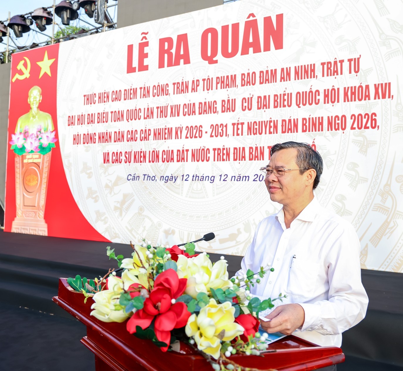 Phát biểu chỉ đạo tại buổi lễ, Chủ tịch UBND thành phố Trương Cảnh Tuyên biểu dương tinh thần trách nhiệm, sự chủ động của lực lượng Công an thành phố trong thời gian qua. Đồng chí nhấn mạnh: Những ngày cuối năm 2025 và những tháng đầu năm 2026 là thời điểm diễn ra nhiều sự kiện chính trị quan trọng, có ý nghĩa trọng đại đối với đất nước và TP Cần Thơ, đặc biệt là sự kiện Đại hội toàn quốc lần thứ XIV của Đảng, bầu cử Đại biểu Quốc hội khóa XVI, Hội đồng nhân dân các cấp nhiệm kỳ 2026 -2031 và mừng Xuân Bính Ngọ 2026. Vì vậy, hoạt động chống phá của các thế lực thù địch, các loại tội tội phạm, tệ nạn xã hội và các hành vi vi phạm pháp luật khác sẽ đặc biệt gia tăng; yêu cầu đặt ra đối với công tác bảo vệ an ninh quốc gia, trật tự an toàn xã hội rất cấp bách, hệ trọng, trong đó lực lượng Công an giữ vai trò nòng cốt.