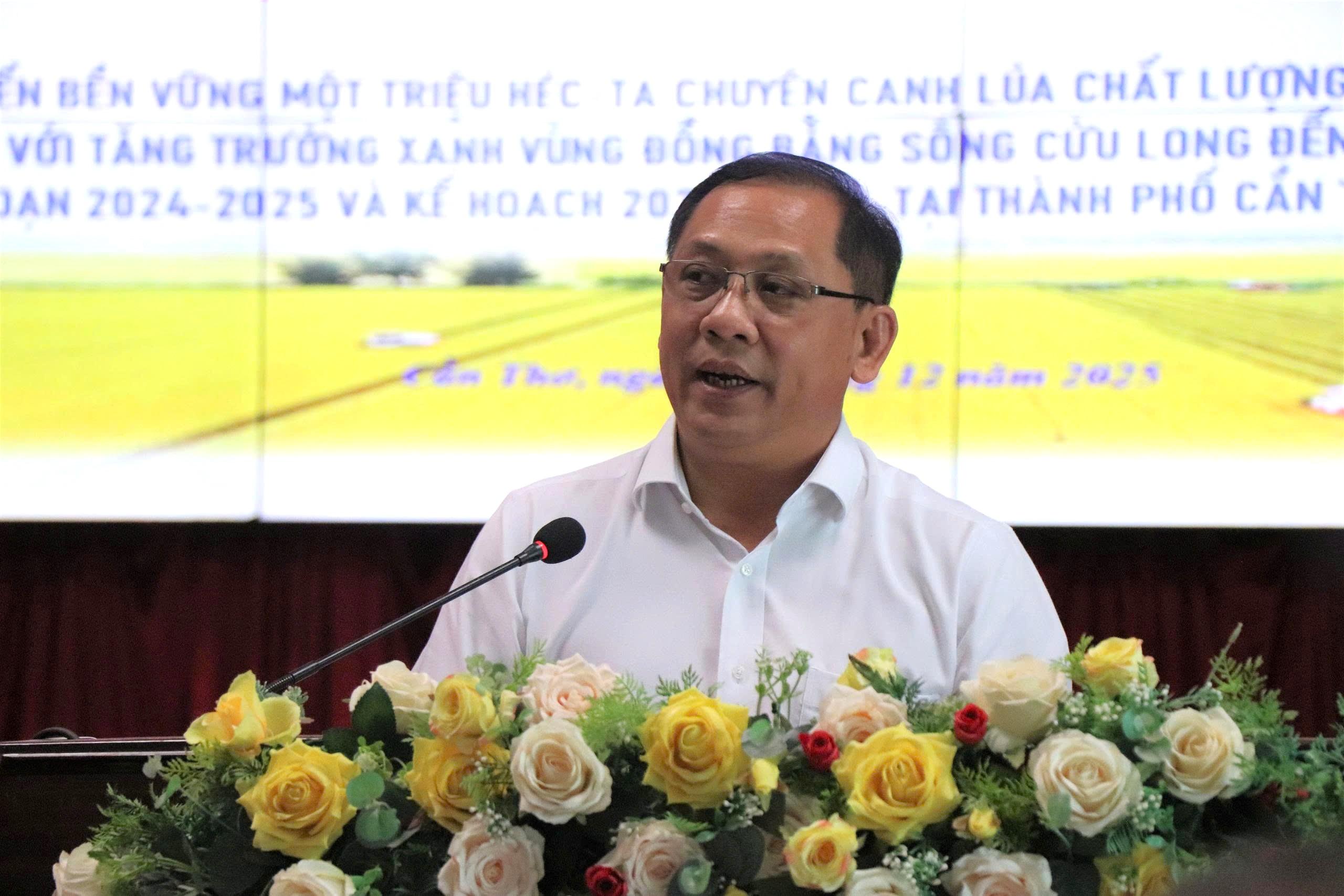Phát biểu tại hội nghị, Phó Chủ tịch UBND thành phố Trần Chí Hùng nhận định, việc triển khai Đề án 1 triệu lúa chất lượng cao, phát thải thấp không chỉ đơn thuần là một dự án hỗ trợ kỹ thuật trên đồng ruộng mà còn là điều kiện quan trọng để tái cấu trúc lại ngành hàng lúa gạo theo hướng bền vững. Thành phố kỳ vọng Đề án 1 triệu ha lúa sẽ là đòn bẩy để nông nghiệp Cần Thơ cất cánh, khẳng định vai trò quan trọng trong sản xuất lúa gạo hiện đại tại Đồng bằng sông Cửu Long.