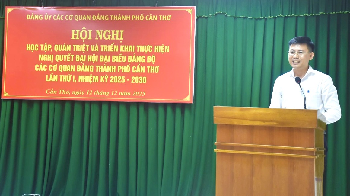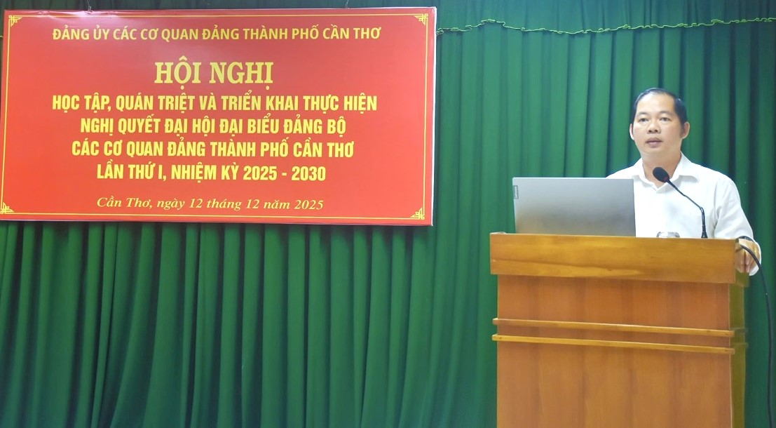 Hội nghị được nghe quán triệt Nghị quyết Đại hội đại biểu Đảng bộ TP Cần Thơ lần thứ I, nhiệm kỳ 2025-2030; triển khai Chương trình hành động số 02-CTr/TU ngày 28-10-2025 của Ban Chấp hành Đảng bộ thành phố thực hiện Nghị quyết Đại hội đại biểu Đảng bộ thành phố Cần Thơ lần thứ I, nhiệm kỳ 2025-2030; quán triệt Nghị quyết Đại hội đại biểu Đảng bộ các cơ quan Đảng thành phố lần thứ I, nhiệm kỳ 2025-2030; triển khai Chương trình hành động số 03-CTr/ĐU, ngày 5-11-2025 của Ban Chấp hành Đảng bộ các cơ quan Đảng thực hiện Nghị quyết Đại hội đại biểu Đảng bộ các cơ quan Đảng thành phố Cần Thơ lần thứ I nhiệm kỳ 2025-2030.